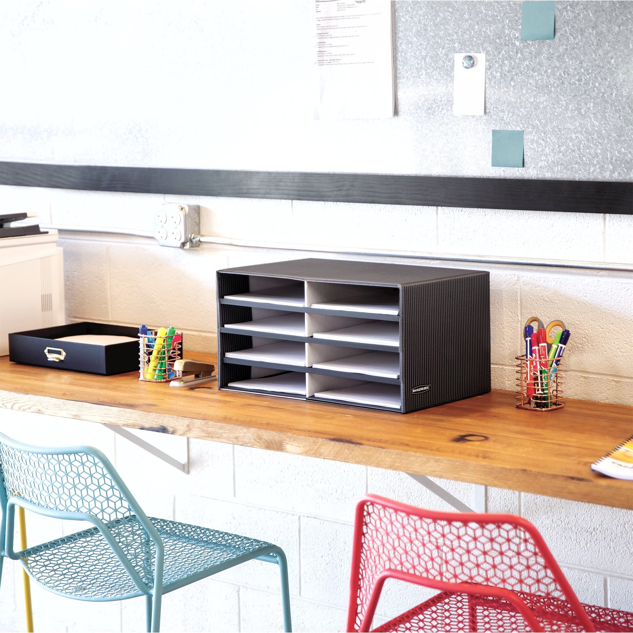 Bankers Box Decorative Eight Compartment Literature Sorter, Letter, Black/Gray Pinstripe (6170301)