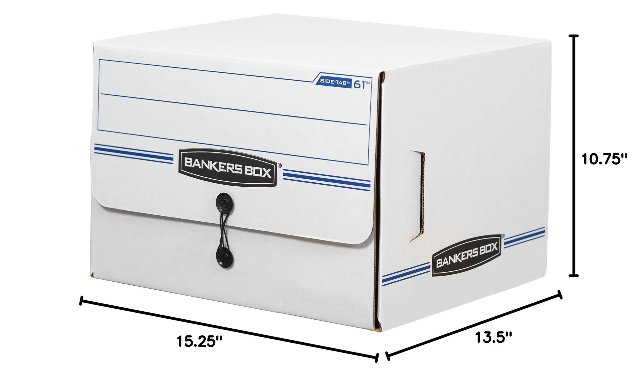 Bankers Box ox 12 Pack SIDE-TAB DROP FRONT Basic-Duty File Storage Boxes, Standard Setup, String and Button, Letter, White/Blue